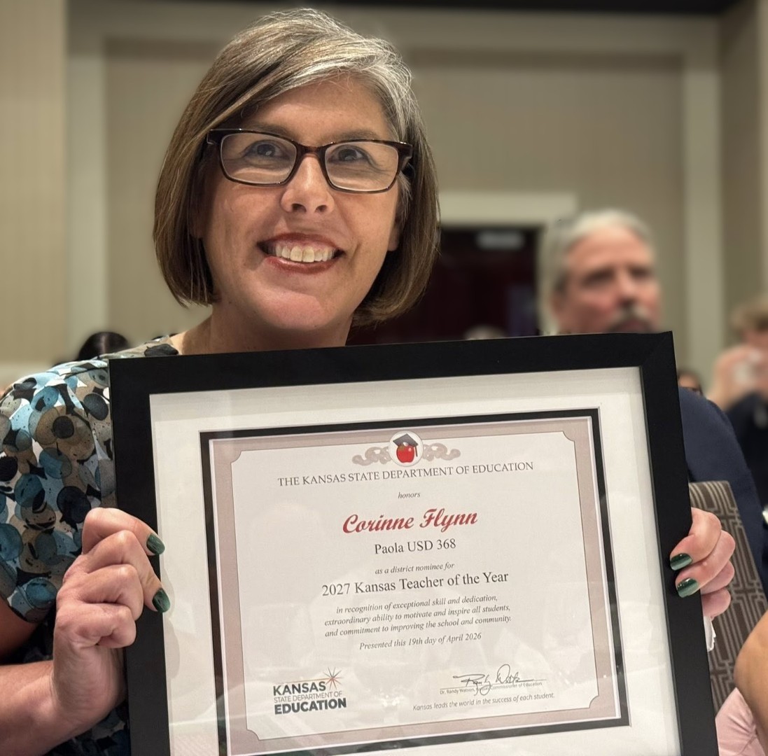 Being selected as the USD 368 Teachers of the Year qualifies both Mrs. Flynn and Mrs. Fawcett to compete for the 2027 Kansas Teacher of the Year. Congratulations to both of them and thanks for everything they do for our students and representing all the great teachers that are part of the Paola School District.
